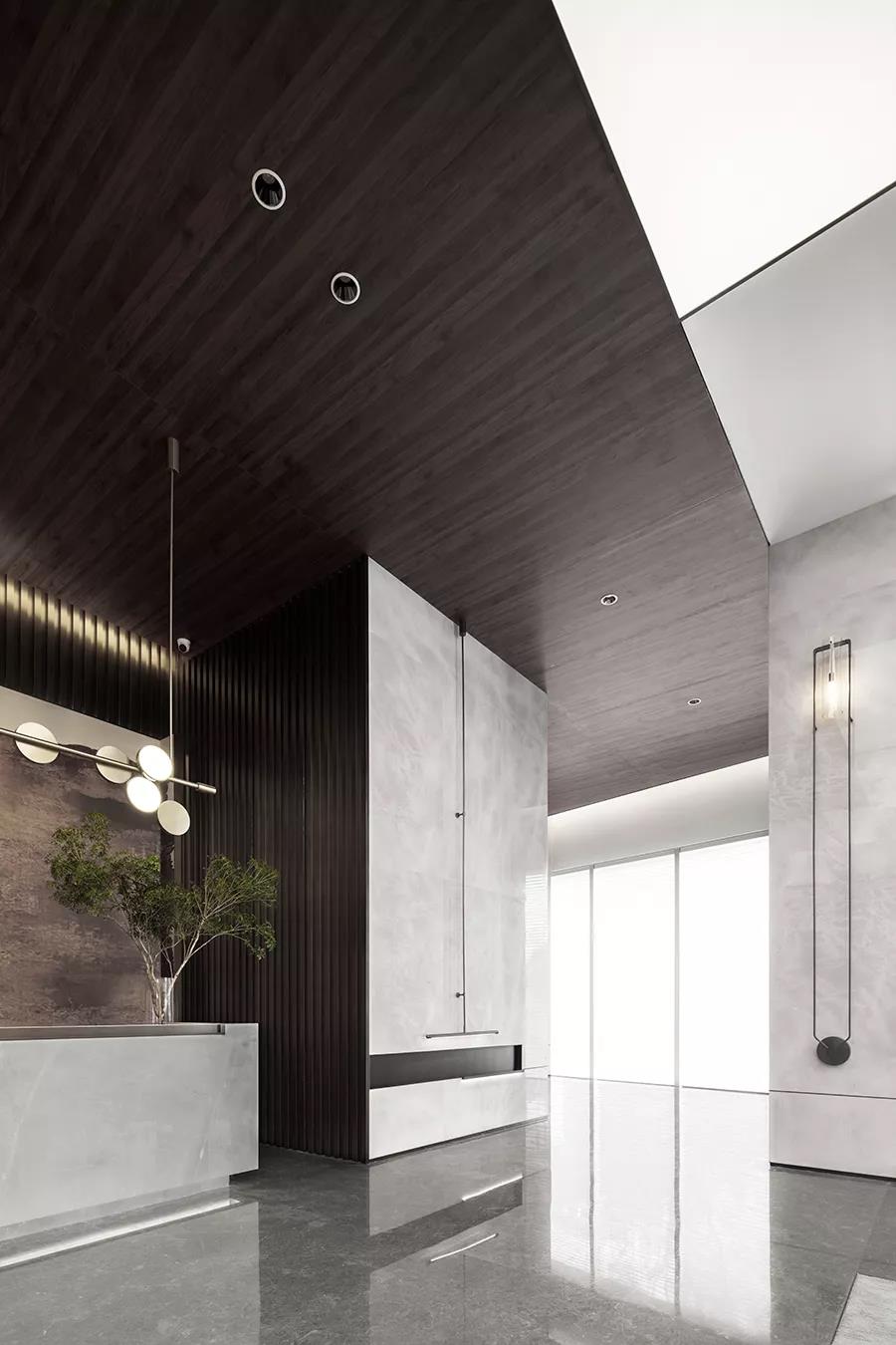 深色木制吊顶形成的视觉反差