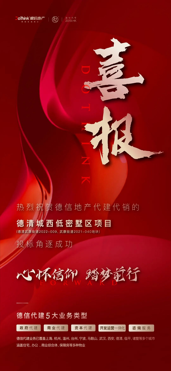 喜报:恭贺德信地产代建代销的德清城西低密墅区项目投标角逐成功,心怀信仰,踏梦前行